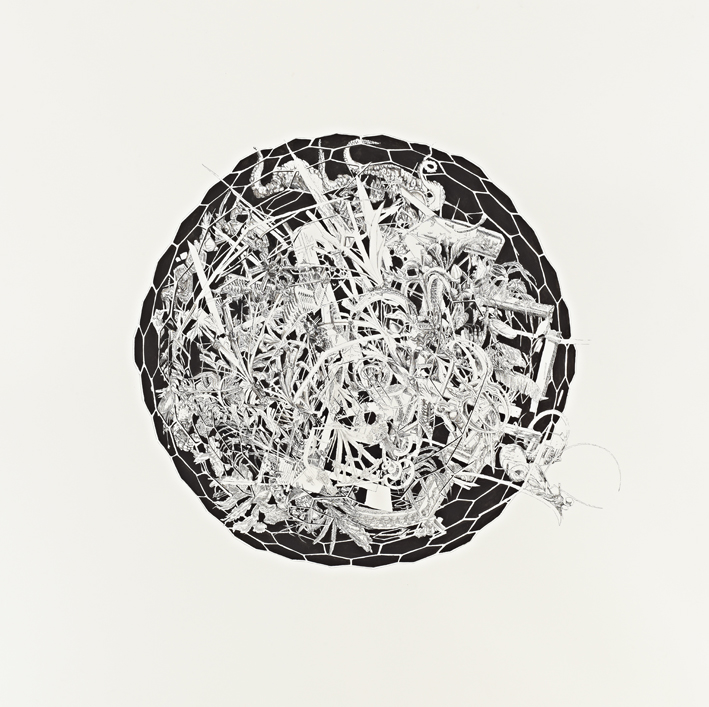 Die Ausstellung Drawing a Universe zeigt Zeichnungen, Objekte und Installationen, die auf Verfahren des Skizzierens, Entwerfens, Kartierens, Kopierens, Wiederholens und Übersetzens beruhen. Kleine oder kleinste Elemente werden in systematischen Reihen angeordnet oder vernetzen, verketten, verdichten sich zu komplexen Systemen, die ganz eigenen Gesetzen gehorchen können. Der fokussierte, isolierende Blick aufs winzige Detail steht neben der Gesamtschau auf das aus unzähligen Einzelelementen bestehende ‚Wimmelbild‘. Diese surrealen „Universen in der Nussschale“ bewegen sich jenseits gewohnter Maßstäbe, oszillieren zwischen Mikro- und Makrokosmos, wecken Assoziationen an biologische Mikroprozesse oder an grafische Darstellungen physikalischer Vorgänge. Es sind gleichsam die Weltlandschaften unserer Zeit, in der immer stärker auf universelle Sichtbarkeit gedrängt wird, aber die Vorgänge, die das Weltgeschehen wirklich bestimmen, sich jenseits der Wahrnehmungsmöglichkeiten der allermeisten Menschen abspielen.