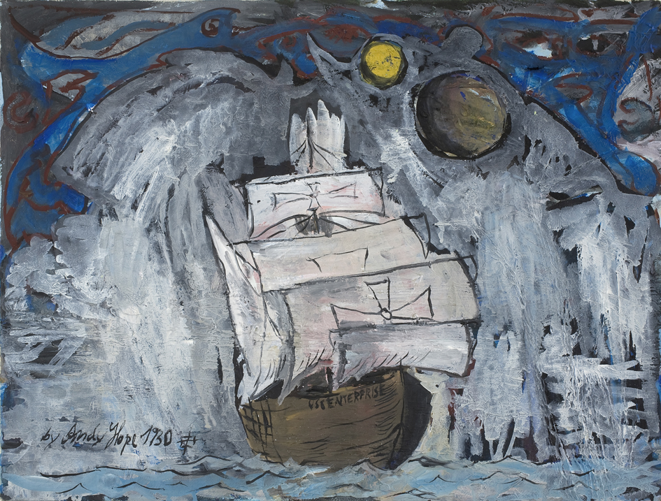 Der Zyklus FM-2030 von Andy Hope 1930, der erstmals in der Ausstellung MIND THE GAP gezeigt wird, nimmt Bezug auf den Futuristen FM-2030, das Pseudonym des iranisch-amerikanischen Schriftstellers F.M. Esfandiary. FM-2030 proklamierte das Zeitalter des Optimismus und verfolgte in seinen Schriften das utopisch-idealistische Ziel einer neuen, besseren Welt, in der durch technologischen Fortschritt und politischen Wandel nicht nur die Grenzen nationaler Zugehörigkeit sondern auch die Endlichkeit des Lebens beseitigt werden – bis zum Jahr 2030 wollte der Futorologe leben. Der Austausch von Identitäten spielt sowohl im Bilderzyklus von Andy Hope 1930 als auch für den Künstler selbst eine Rolle.