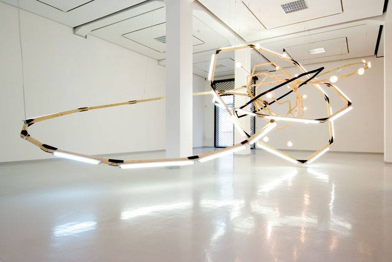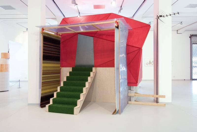 Obwohl die gezeigten Arbeiten thematisch unterschiedlich sind, gibt es Berührungspunkte, an denen sie sich überschneiden. Eine solche Überschneidung ergibt sich daraus, dass einige Arbeiten Raumgebilde sind, die teilweise an Bauten oder auch an Modelle erinnern. Die scheinbare Nähe zur Architektur oder zum Design ist jedoch täuschend. Denn es werden unterschiedliche Konzepte für dreidimensionale Gebilde mit sozialen, philosophischen und politischen Programmen verknüpft.