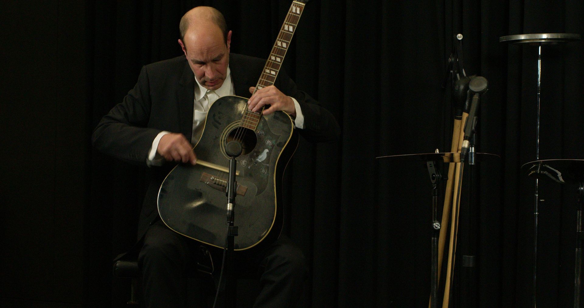 Sein Set von Instrumenten besteht aus einer alten verstaubten verstimmten akustischen Gitarre, mehreren DMM-Platten auf Stativen, Teilen aus einer alten Metallskulptur, einer Gaita und Perkussionsinstrumenten. Die Instrumente haben klanglich begrenzte Möglichkeiten und die Töne, die den Instrumenten und Objekten entlockt werden können, sind nicht so ganz vorhersehbar. Mit teilweise selbst entwickelten Spieltechniken improvisiert William Engelen auf diesen Instrumenten und erforscht ihr klangliches Potenzial.